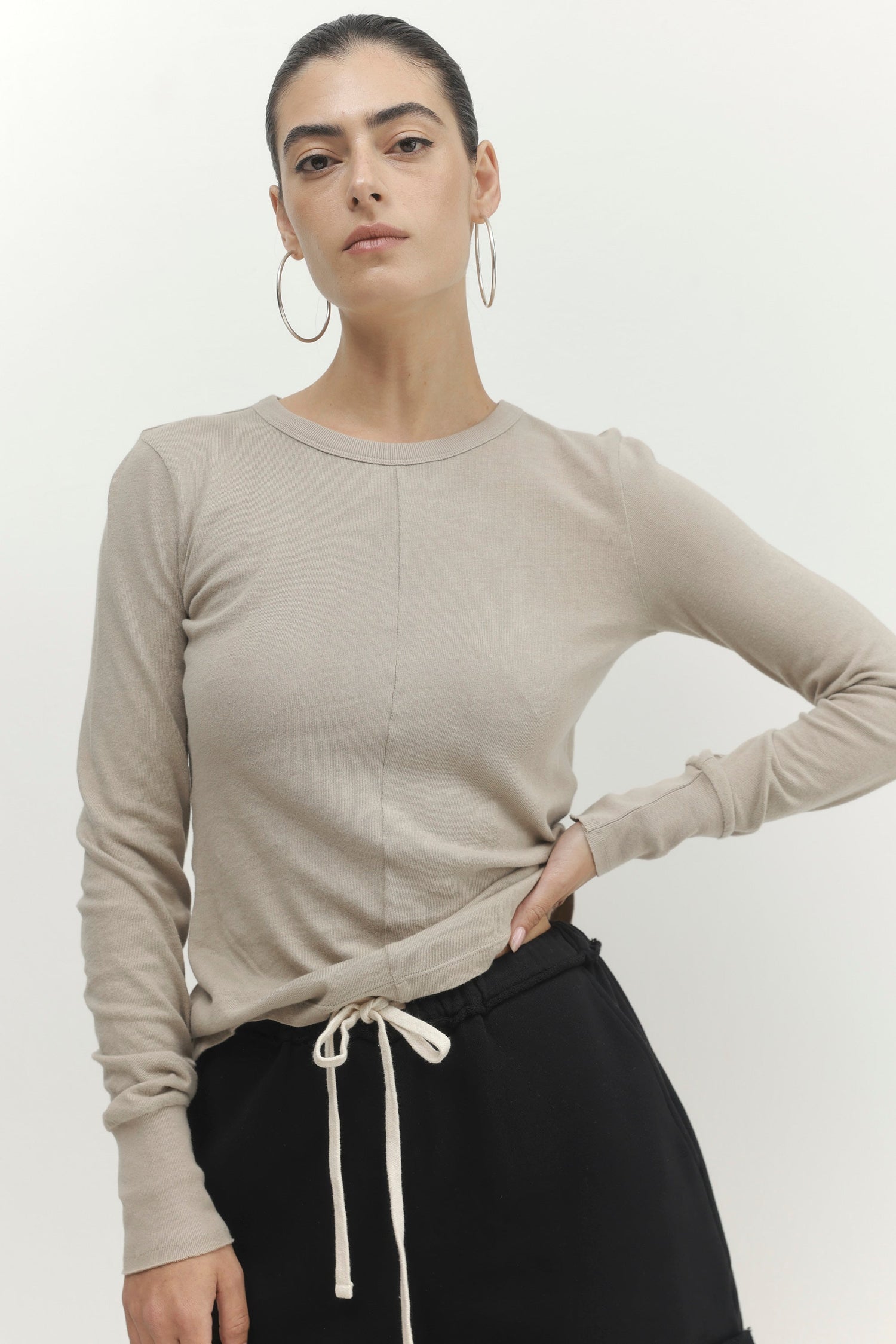 חולצת סריג מבד עדין ונעים עם תפר קדמי ושרוולים ארוכים מתאימה ליום וערב.
