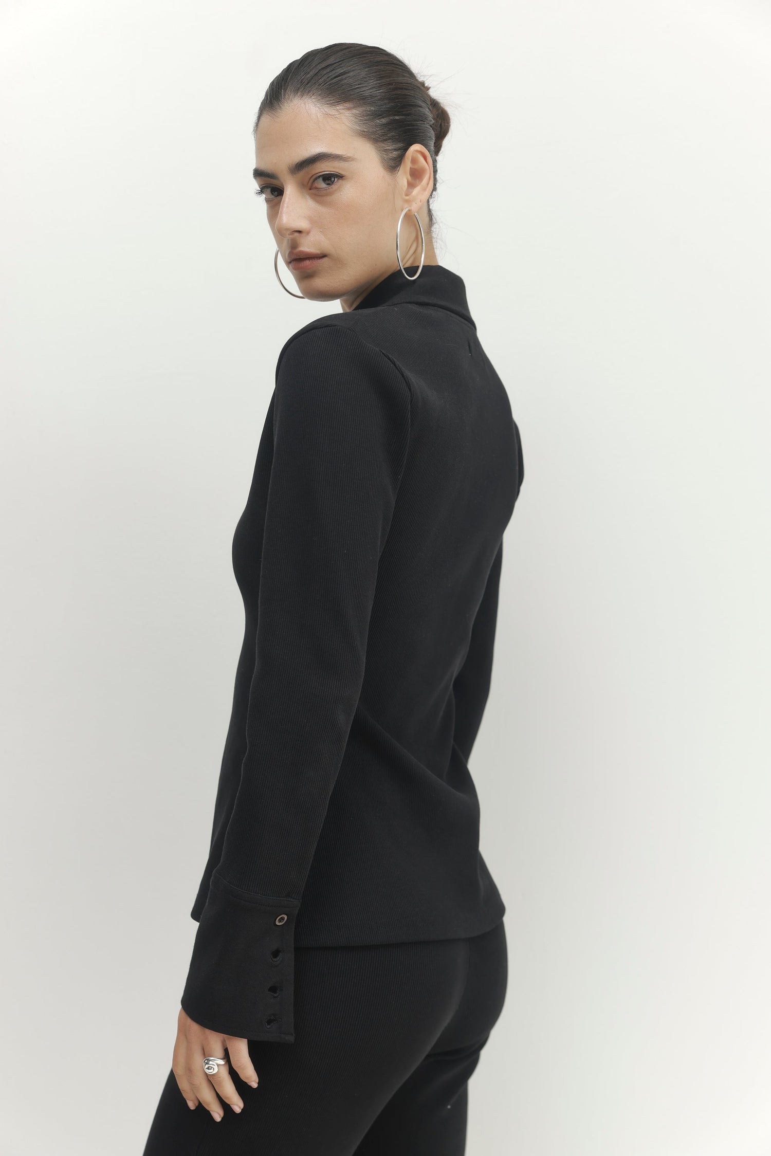 חולצה מכופתרת מבד ריב עבה ואיכותי, עם שרוולים ארוכים ודיטייל אלגנטי בחפתים- מומלץ לשלב עם המכנסיים התואמים.